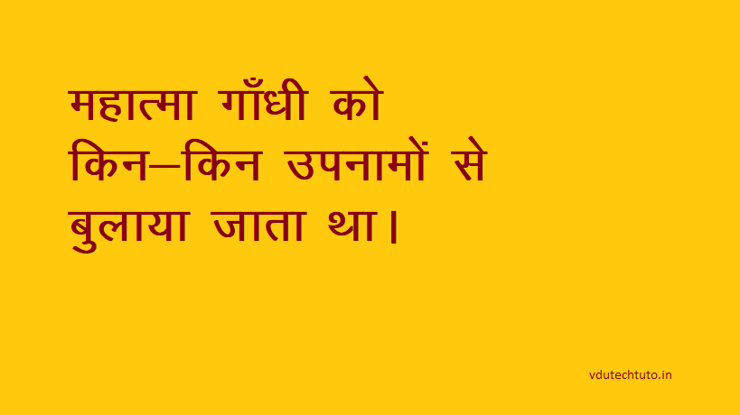 दोस्तों, जैसा की आप जानते ही हैं की महात्मा गाँधी को सभी अलग-अलग नाम से बुलाते थे. तो इस पोस्ट में हम बात करने वाले हैं महात्मा गाँधी के उप नामों के बारे