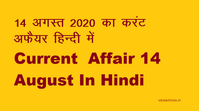 14 August 2020 Current Affairs – 14 अगस्त 2020 का करंट अफेयर ( सामान्य ज्ञान )
