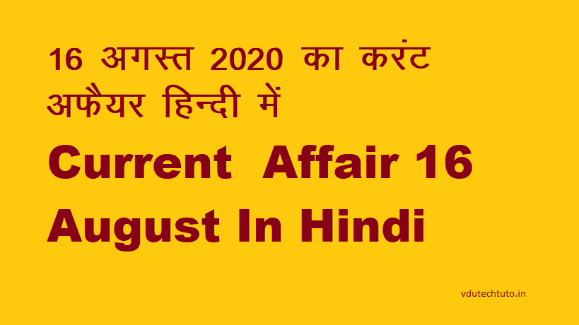 16 August 2020 Current Affairs – 16 अगस्त 2020 का करंट अफेयर ( सामान्य ज्ञान )