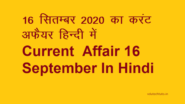 16 September 2020 Current Affairs – 16 सितम्बर 2020 का करंट अफेयर ( सामान्य ज्ञान )