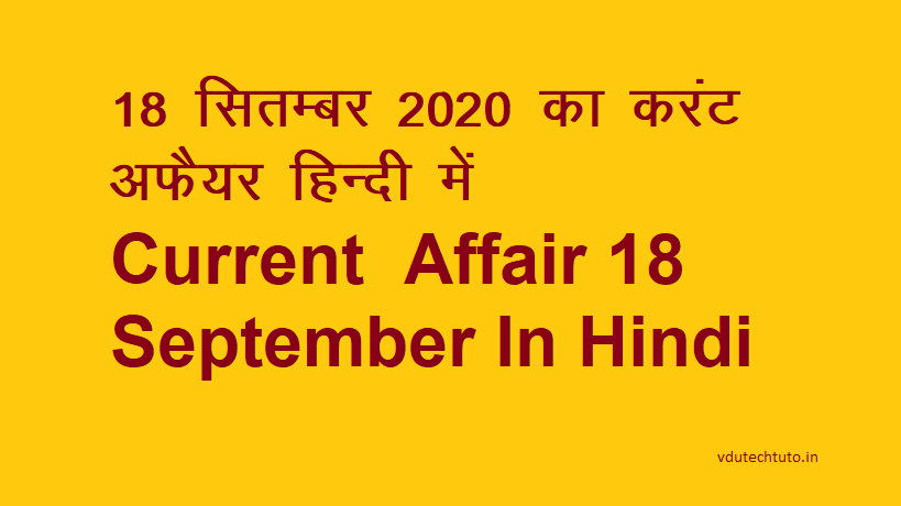 18 September 2020 Current Affairs – 18 सितम्बर 2020 का करंट अफेयर ( सामान्य ज्ञान )