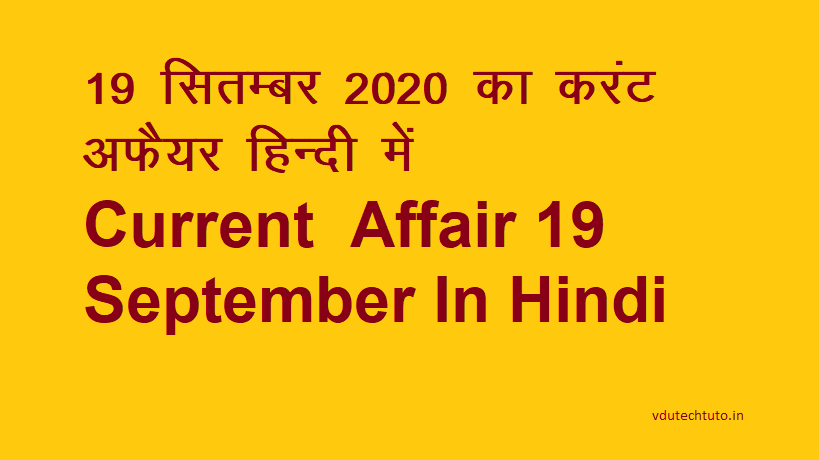 19 September 2020 Current Affairs – 19 सितम्बर 2020 का करंट अफेयर ( सामान्य ज्ञान )