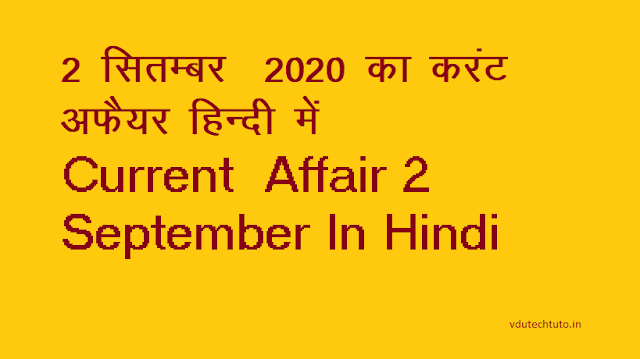 2 September 2020 Current Affairs – 2 सितम्बर 2020 का करंट अफेयर ( सामान्य ज्ञान )
