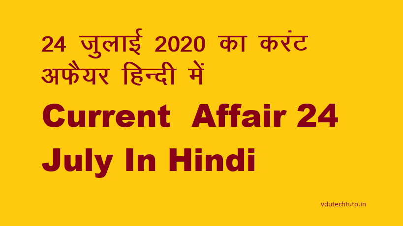 24 July 2020 Current Affairs – 24 जुलाई 2020 का करंट अफेयर ( सामान्य ज्ञान )