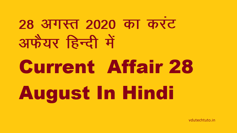 28 August 2020 Current Affairs – 28 अगस्त 2020 का करंट अफेयर ( सामान्य ज्ञान )