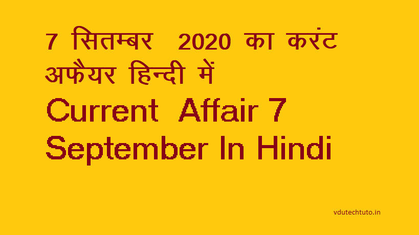 7 September 2020 Current Affairs – 7 सितम्बर 2020 का करंट अफेयर ( सामान्य ज्ञान )